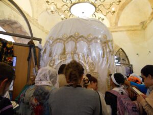 […] Os supostos túmulos de muitas figuras luminares – bíblicas (túmulo de Raquel em Belém), líderes rabínicos (Simon bar Yochai em Meron), medievais (Meir Baal Nes na Tibéria) e modernos (Nachman de Bratzlav) – tornaram-se o foco de peregrinações e orações para intervenção divina entre os ultra-ortodoxos.