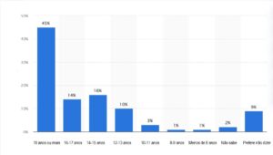 Idade dos jovens adultos na Grã-Bretanha (GB) quando acessaram pela primeira vez conteúdo pornográfico online em maio de 2022, por faixa etária: