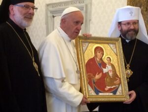 Papa Francisco ao lado do primaz greco-católico da Ucrânia, S.B. Sviatoslav.