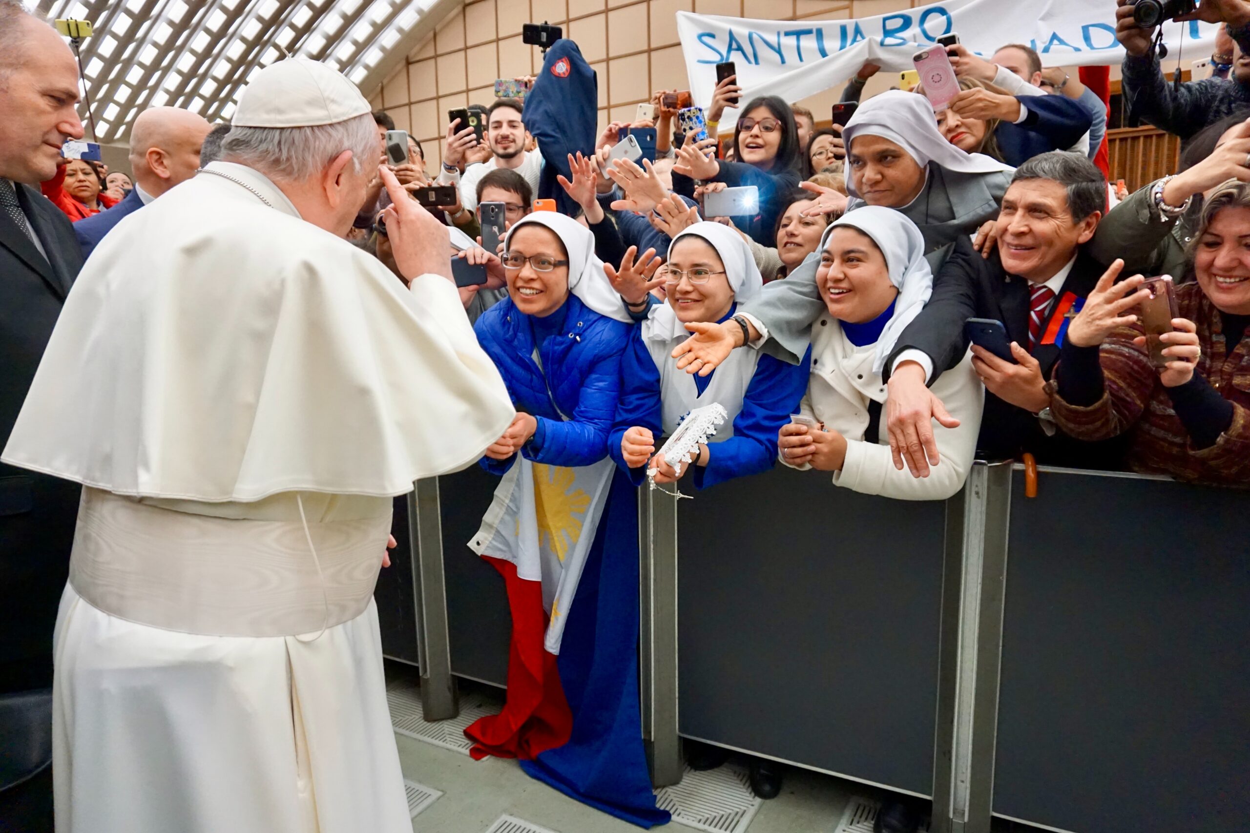 Mas há ainda outra pobreza: é a pobreza espiritual dos nossos dias, que afeta gravemente também os países considerados mais ricos. É aquilo que o meu Predecessor, o amado e venerado Bento XVI, chama a «ditadura do relativismo», que deixa cada um como medida de si mesmo, colocando em perigo a convivência entre os homens. E assim chego à segunda razão do meu nome. Francisco de Assis diz-nos: trabalhai por edificar a paz. Mas, sem a verdade, não há verdadeira paz. Não pode haver verdadeira paz, se cada um é a medida de si mesmo, se cada um pode reivindicar sempre e só os direitos próprios, sem se importar ao mesmo tempo do bem dos outros, do bem de todos, a começar da natureza comum a todos os seres humanos nesta terra.